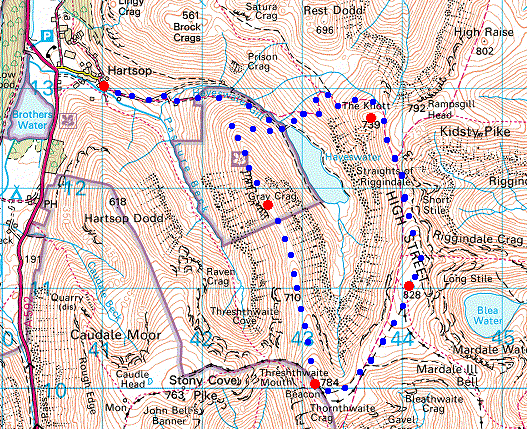 Route: Hartsop - Hayeswater - Gray Crag - Thornthwaite Crag - High Street - The Knott - Hayeswater - Hartsop