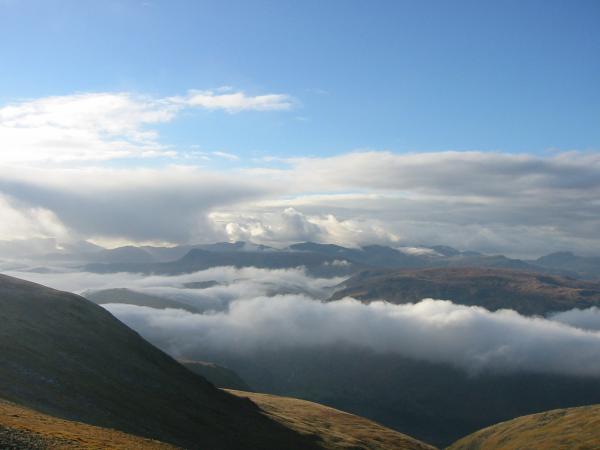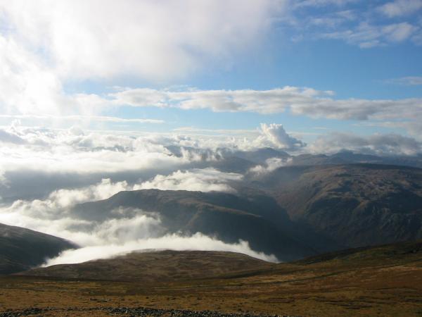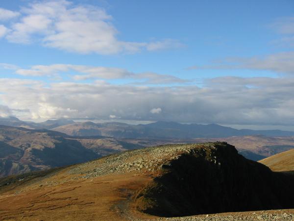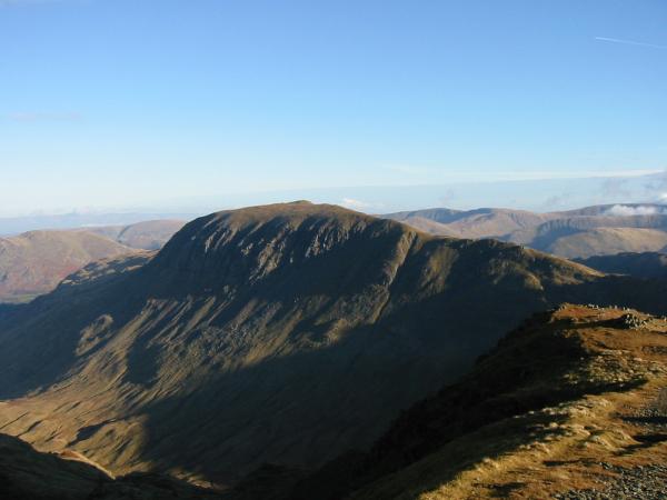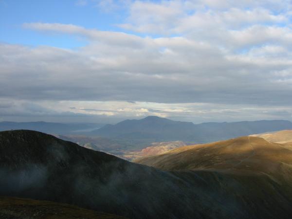 The view west from higher up with Great Gable seen above the mass of Ullscarf