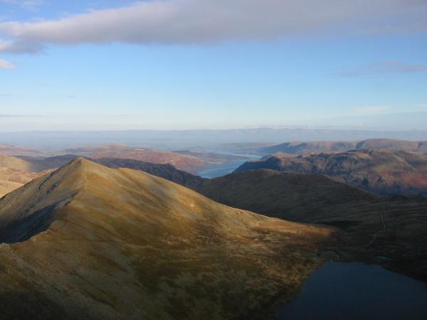 Red Tarn and Striding Edge with the High Street ridge in the distance