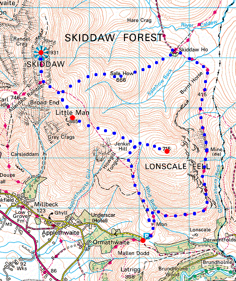 Route: Latrigg car park (end of Gale Road) - Lonscale Fell - Jenkin Hill - Skiddaw Little Man - Skiddaw - Sale How - Skiddaw House - Glenderaterra valley - Latrigg car park