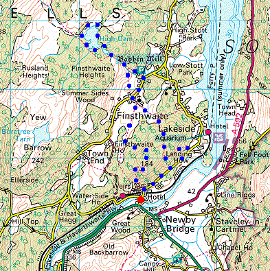 Route: Newby Bridge - Finsthwaite Heights (Summer House Knott) - Finsthwaite - Low Dam - High Dam - Low Dam - Finsthwaite - Newby Bridge