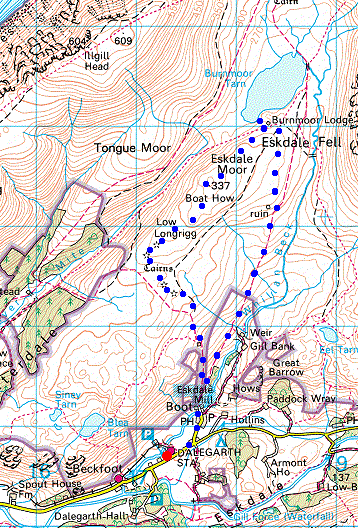 Route: Dalegarth Station, Boot - Boot - Burnmoor Tarn - Boat How (Eskdale Moor) - Boot - Dalegarth Station