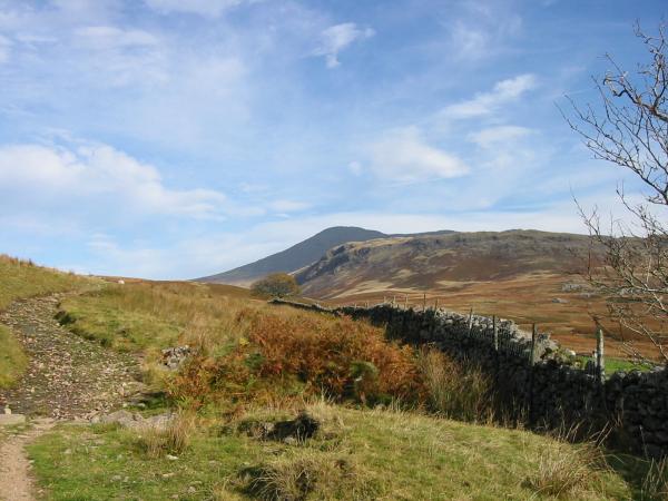 Scafell in shadow behind Great How from the track to Burnmoor Tarn