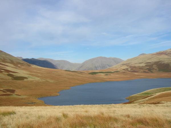Kirk Fell and Scafell from Burnmoor Lodge and Tarn