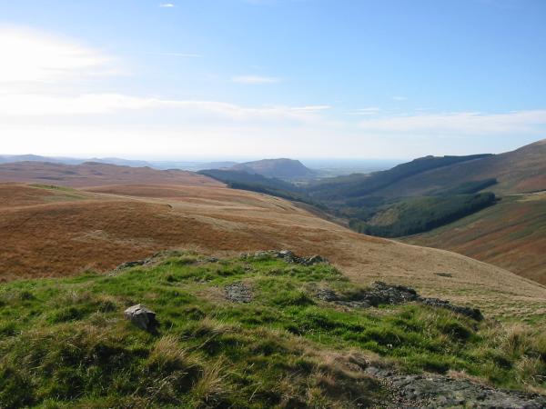 Muncaster Fell and the wooded Irton Pike from Boat How summit