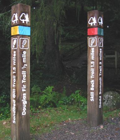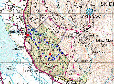 The map is now out of date as the top of Dodd is now tree free. We followed the green 'Dodd summit' walk posts rather than using a map.