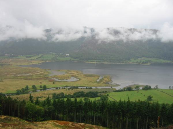 The head of Bassenthwaite Lake with Lord's Seat and Barf in the cloud beyond
