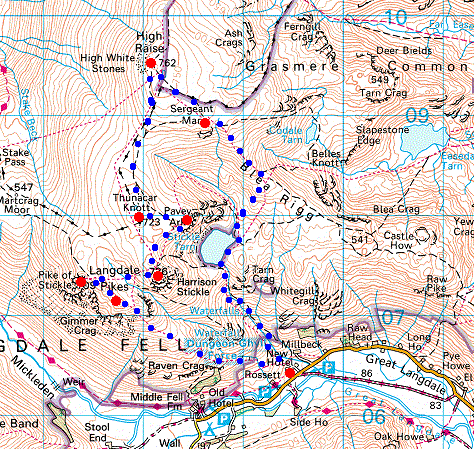 Route: Stickle Barn, Great Langdale - Loft Crag - Pike O'Stickle - Harrison Stickle - Pavey Ark - Thunacar Knott - High Raise - Sergeant Man - Stickle Tarn - Stickle Barn