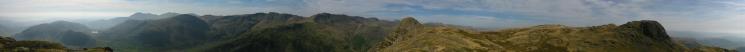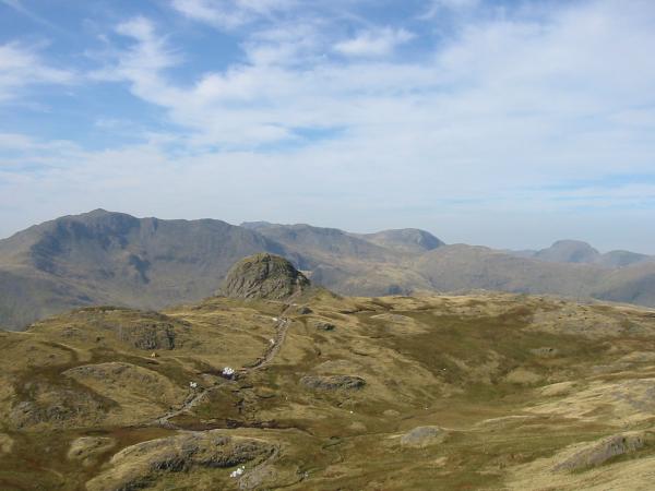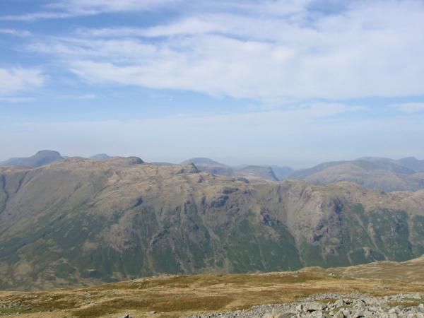Pike O' Stickle with Bowfell, Scafell Pike, Esk Pike, Great End, Allen Crags, Great Gable and Green Gable beyond from the ascent of Harrison Stickle