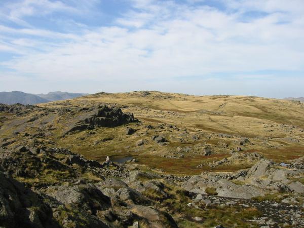 High Raise with Skiddaw in the distance from Wainwright's 'recognised summit' of Thunacar Knott