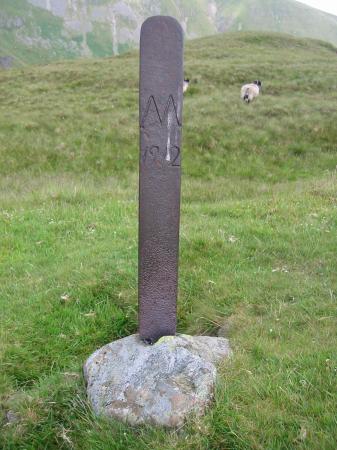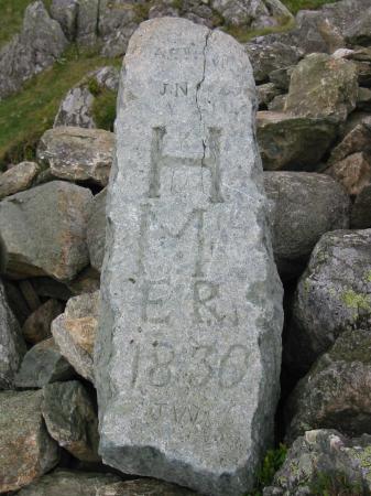 Boundary post on the slope down to Nick Head from Sheffield Pike's summit