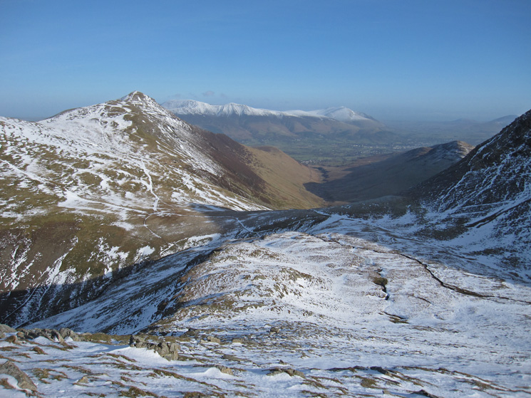 Eel Crag (Crag Hill) and the Helvellyn range in the distance