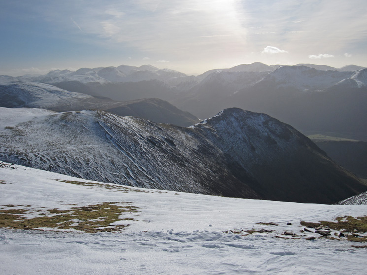 Grisedale Pike and Coledale with the Skiddaw fells and Blencathra beyond from my route up Grasmoor