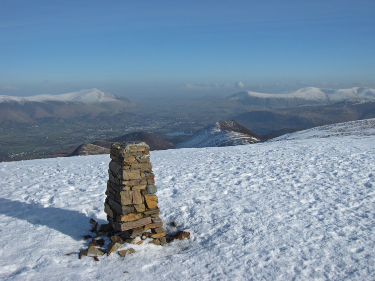 Eel Crag (Crag Hill) trig point with Keswick far below