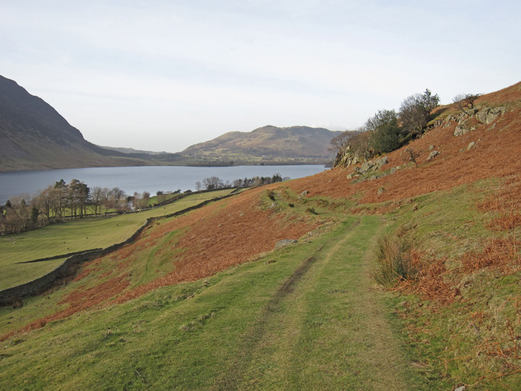The track to Cinderdale Common. Low Fell in the distance beyond Crummock Water