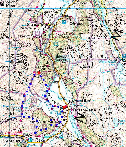 Route: Rosthwaite - Castle Crag - Allerdale Ramble - High Doat - Longthwaite - Rosthwaite