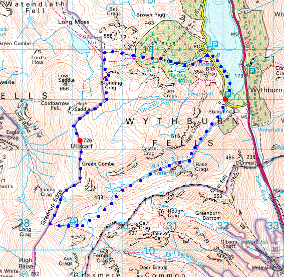 Route: Steel End, Thirlmere - Wythburn Valley - Wythburn Head Tarns - The Bog - Greenup Edge - Ullscarf - Standing Crag - Harrop Tarn - Dobgill Bridge - Thirlmere - Steel End