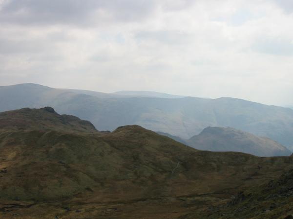 Calf Crag with Great Rigg behind on the left and the top of Helm Crag with Stone Arthur behind on the right