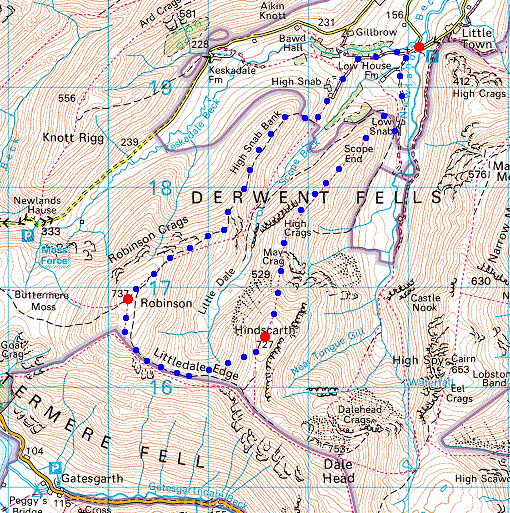 Route: Newlands Church, Little Town - High Snab Bank - Robinson - Littledale Edge - Hindscarth - Scope End - Newlands Church