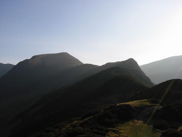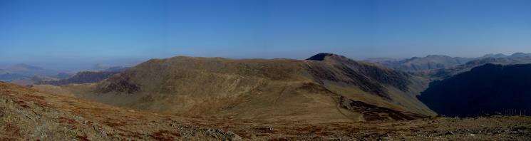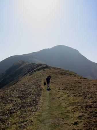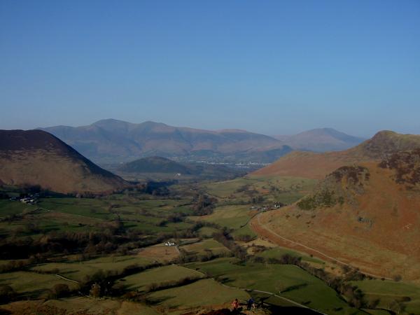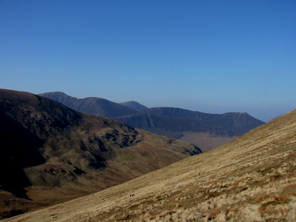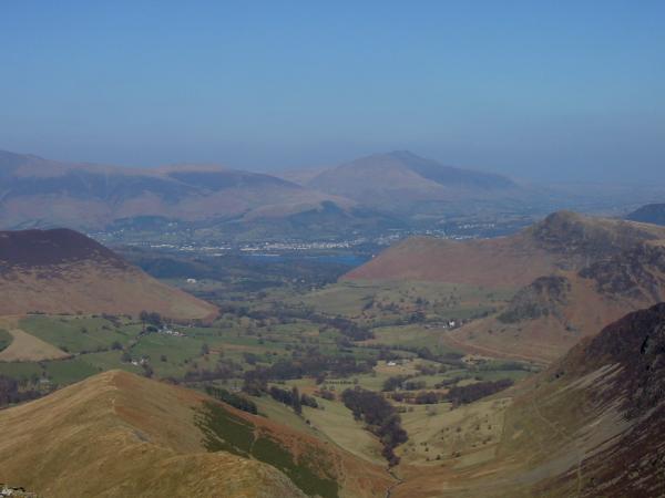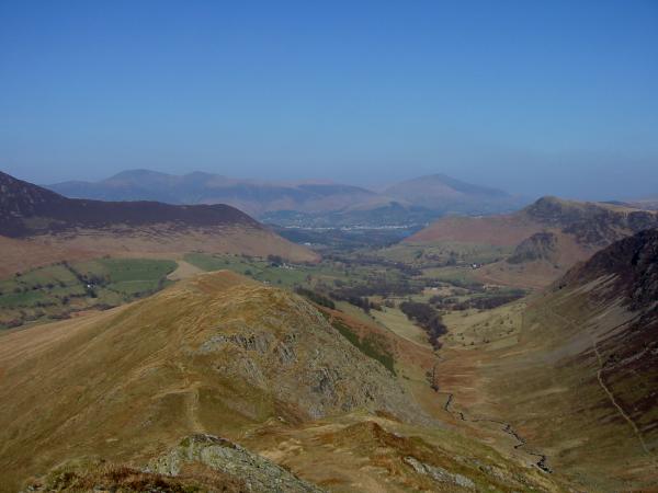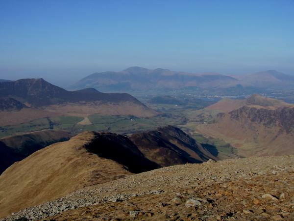 The view north down the ridge to Scope End with Skiddaw in the distance