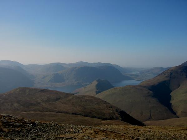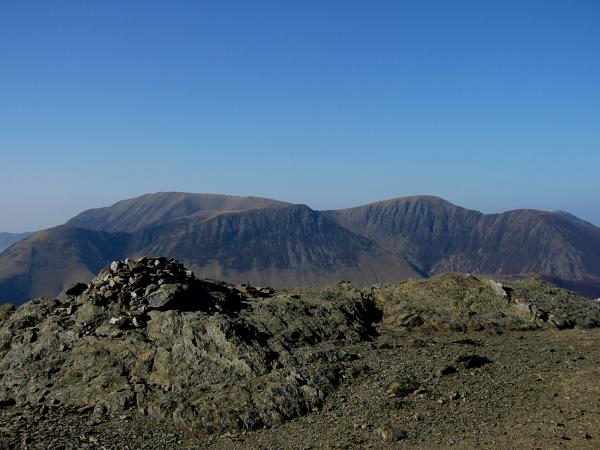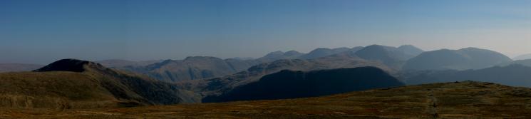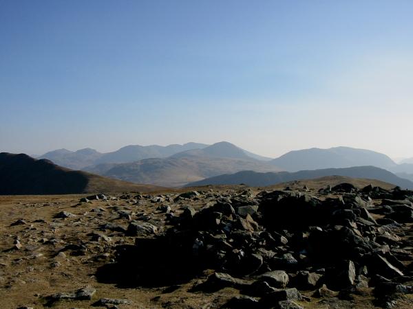 Bowfell, Esk Pike, Great End, Ill Crag, Broad Crag, Scafell Pike, Great Gable and Kirk Fell from Hindscarth's summit