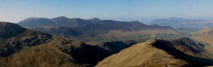 The view north with Skiddaw behind Rowling End, Blencathra and Catbells