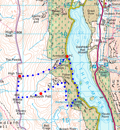 Route: Armboth - High Tove - Middle Crag - Armboth Fell - Fisher Crag - Launchy Gill - Thirlmere - Armboth