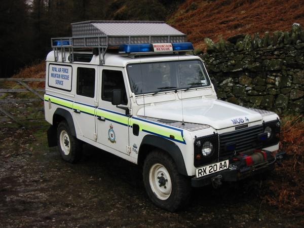 Mountain Rescue Land Rover at the entrance to Iron Keld Plantation