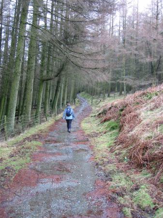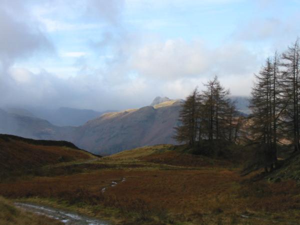 On exiting Iron Keld Plantation the Langdale Pikes can just be seen over the top of Lingmoor Fell