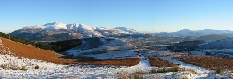 Skiddaw, the Vale of Keswick and the north end of the Helvellyn ridge from Kinn