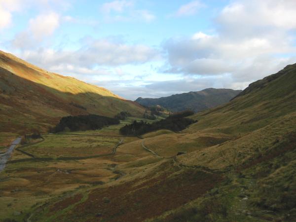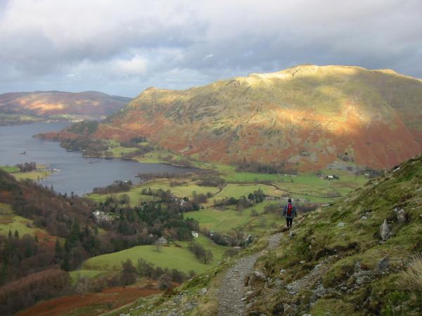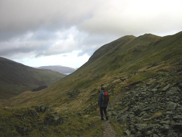 The path to Deepdale Hause with Saint Sunday Crag ahead and a glimpse of Ullswater