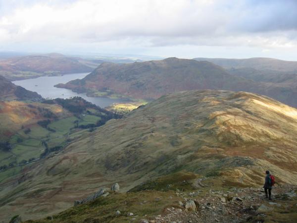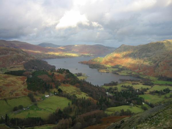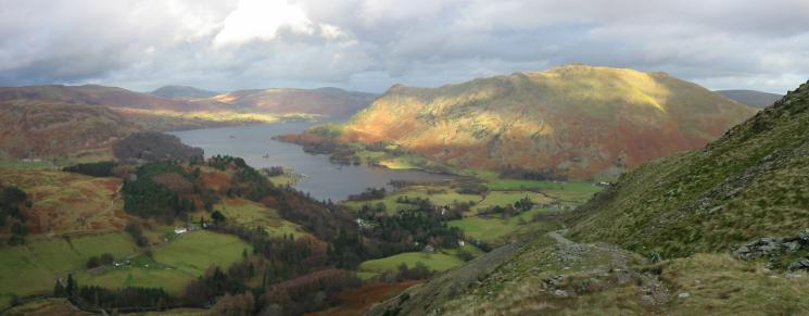 Ullswater from the descent off Saint Sunday Crag with Birks directly in front and Place Fell on the other side of Patterdale