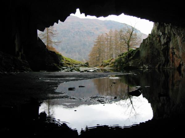 Looking out of Loughrigg Cave