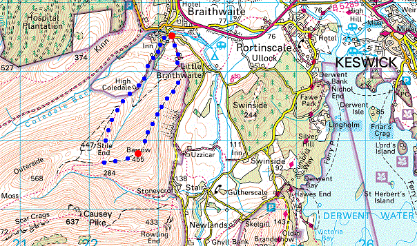 Route: Braithwaite - Braithwaite Lodge - Barrow - Barrow Door - High Coledale - Braithwaite