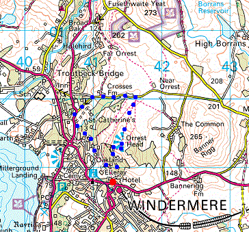 Route: Windermere Railway Station - Orrest Head - The Causeway Farm - A592 - Windermere Railway Station
