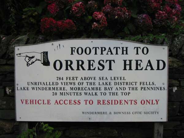 I followed A. Wainwright's 'Orrest Head' walk in his book 'The Outlying Fells of Lakeland' [page 26].