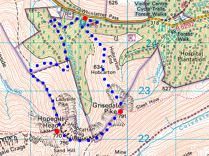 Route: Whinlatter Pass - Hobcarton Valley - Ladyside Pike - Hopegill Head - Grisedale Pike - Hobcarton End - Whinlatter Pass