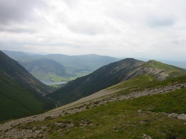 Hobcarton Valley. Grisedale Pike is the peak on the left