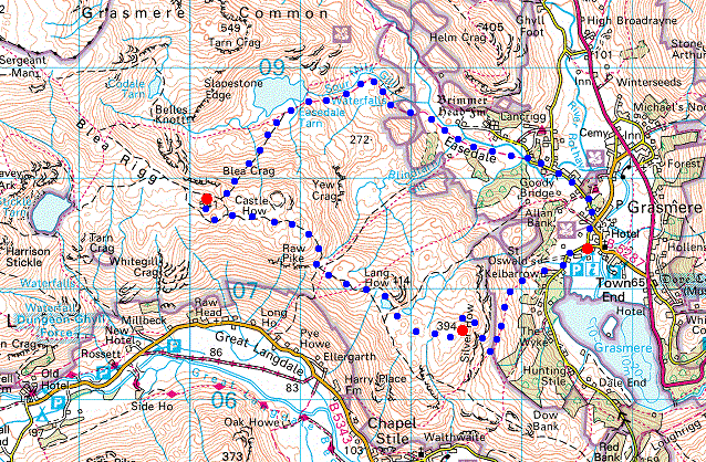 Route: Grasmere Village - Kelbarrow - Silver How - Blea Rigg - Easedale Tarn - Sourmilk Gill - Easedale - Grasmere Village