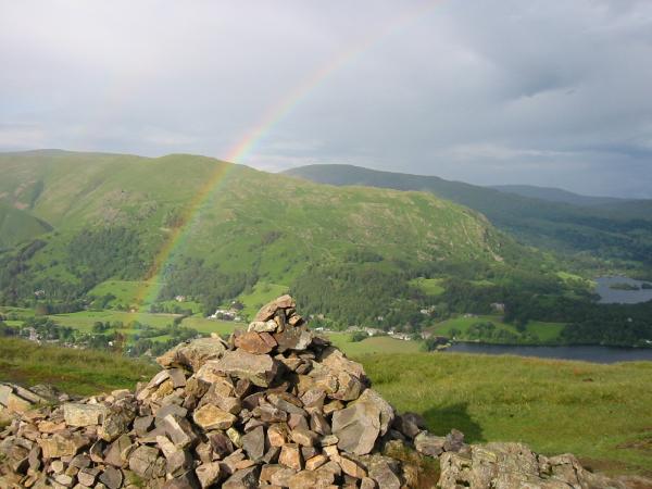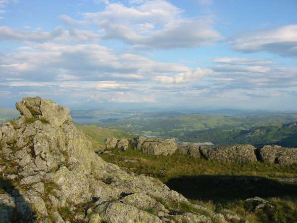 Heron Pike with Red Screes behind, Grasmere and Rydal Water from Silver How's summit cairn