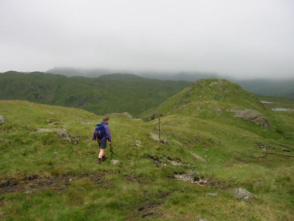 Heading towards Calf Crag (seen centre visible skyline) from Steel Fell