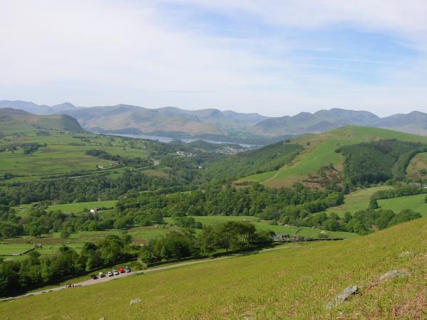 Walla Crag, the northwest fells, Derwent Water and Latrigg from the climb up Blease Fell