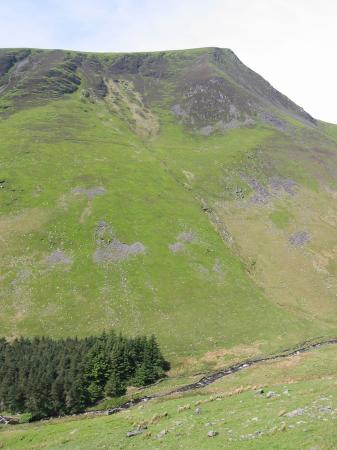 Skiddaw and Skiddaw House in the trees from the Cloven Stone