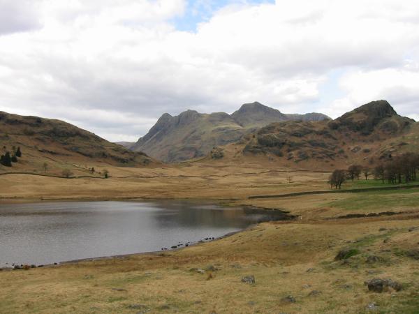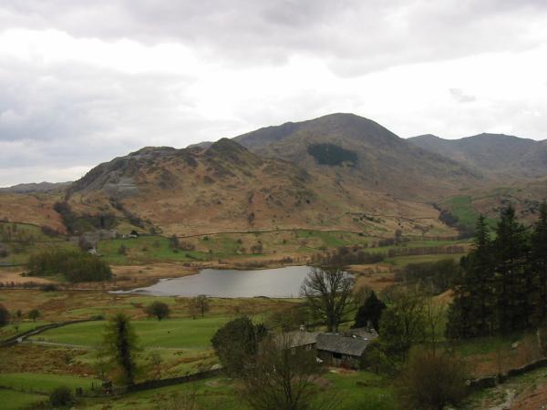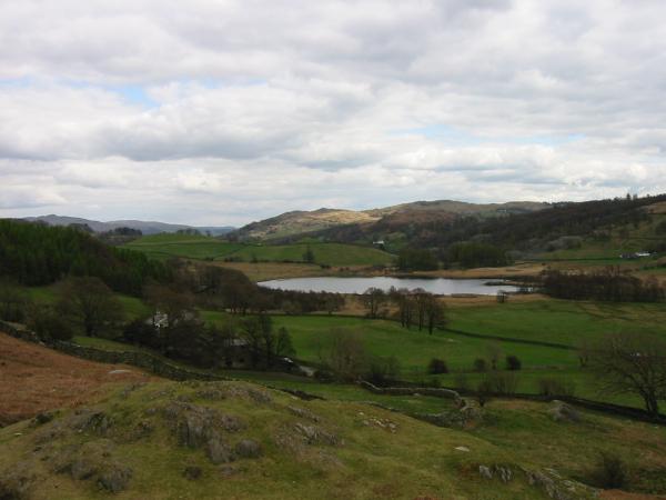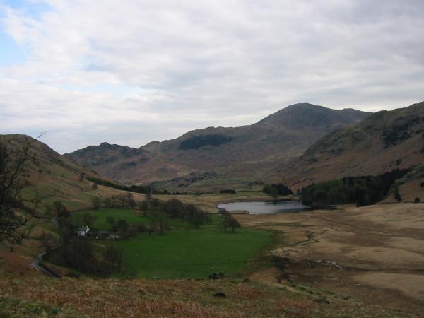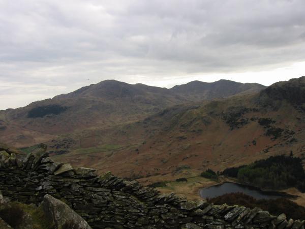 Blea Tarn and Wetherlam from the descent off Lingmoor Fell
