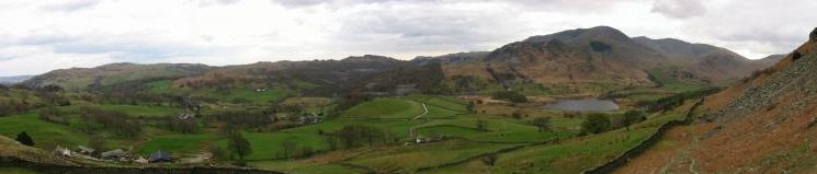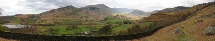 Langdale valley panorama from Lingmoor Fell's northwest ridge