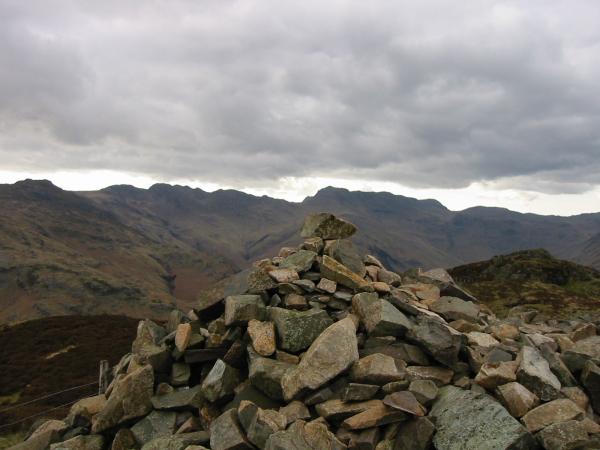 Crinkle Crags and Bowfell from Lingmoor Fell summit